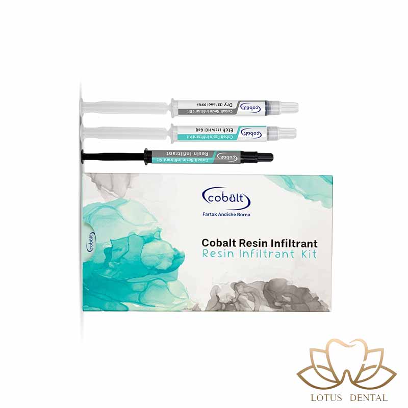 با پرکردن پروزیتی های میکروسکوپی سطح مینا که در اثر پوسیدگی های اولیه ایجاد شده است باعث بهبود ظاهر وایت اسپات می شود. این محصول همچنین با پر کردن و مسدود کردن مسیر حرکت باکتری ها و اسید حاصل از آنها به نواحی عمقی تر مینا از پیشرفت ظایعه مینایی جلوگیری میکند. کیت رزین اینفیلترانت کبالت حاوی یک کیت شامل اسید برای آماده سازی سطح مینا، الکل به منظور خشک سازی سطح و رزین اینفیلتره شونده است.همچنین سر سوزن های ویژه این محصول استفاده از آن در دهان را تسهیل می بخشد. این کیت برای درمان 6 بیمار طراحی شده است.